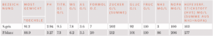 Tab.1: Analyse zweier Moste 2024 – HVS tief, Zeile oben, HVS hoch, Zeile unten.