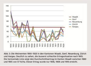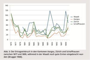 Davon betroffen waren vor allem die Deutschschweizer Kantone, während zum Beispiel in der Waadt noch gute Ernten eingebracht wurden und sich die Rebfläche in diesem Kanton weiter ausdehnte (Abb. 3).