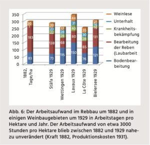 Wie Produktionskostenberechnungen für den Kanton Aargau zeigen, nahm der Anteil der Handarbeitskosten an den gesamten Produktionskosten zwischen den 1880er-Jahren und 1930 von 48.5 auf 53 % zu. Im Weinbau gab es keine Fortschritte zur Verbesserung der Arbeitsproduktivität.