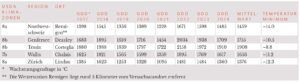 Tabelle 2: Jahresniederschlag in mm in verschiedenen Regionen der Schweiz, basierend auf www.agrometeo.ch.