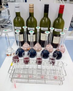 Abb.: Die Weine auf dem Prüfstand im Labor des Weinbauzentrums. (© R. Zimmermann)