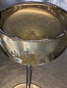 Abb. 2: Weinsteinausfällungen im Glas. (© Thierry Wins)